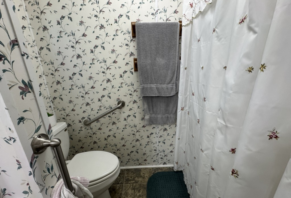 Upon entry, the open floor plan seamlessly connects the living room, dining area, and a modern U-shaped kitchen equipped with updated hardwood flooring. The master bedroom, located at the rear of the home, accommodates a king-size bed and includes a spacious walk-in closet, ample room for dressers, and an ensuite bathroom featuring additional storage, a double vanity, and a walk-in shower. A two-year-old freezer is also included in this room.