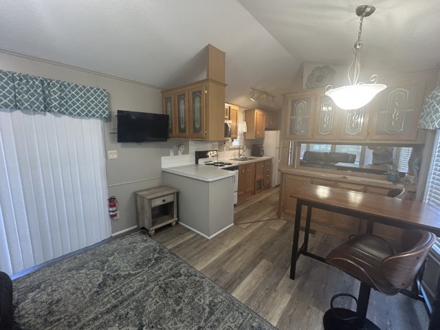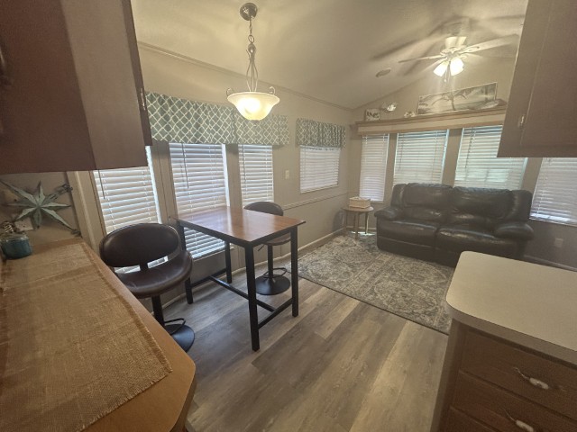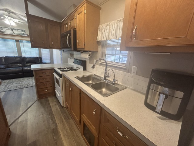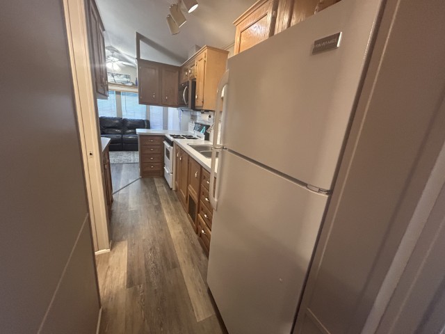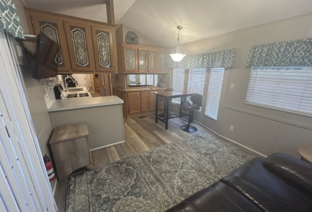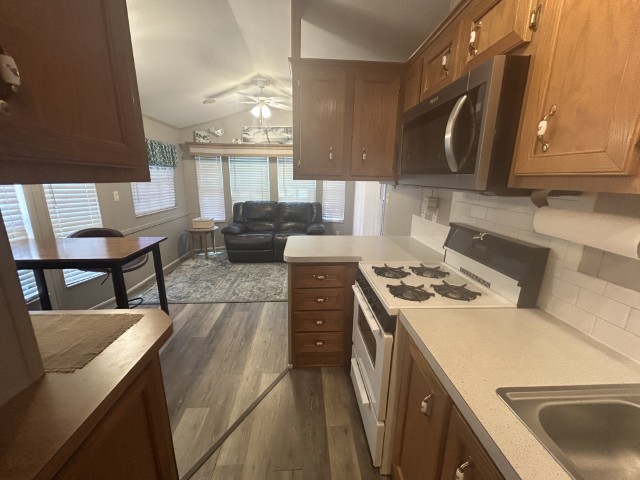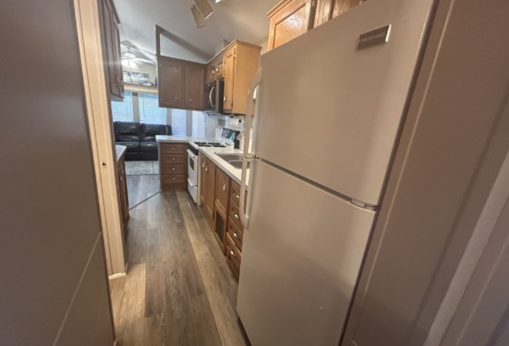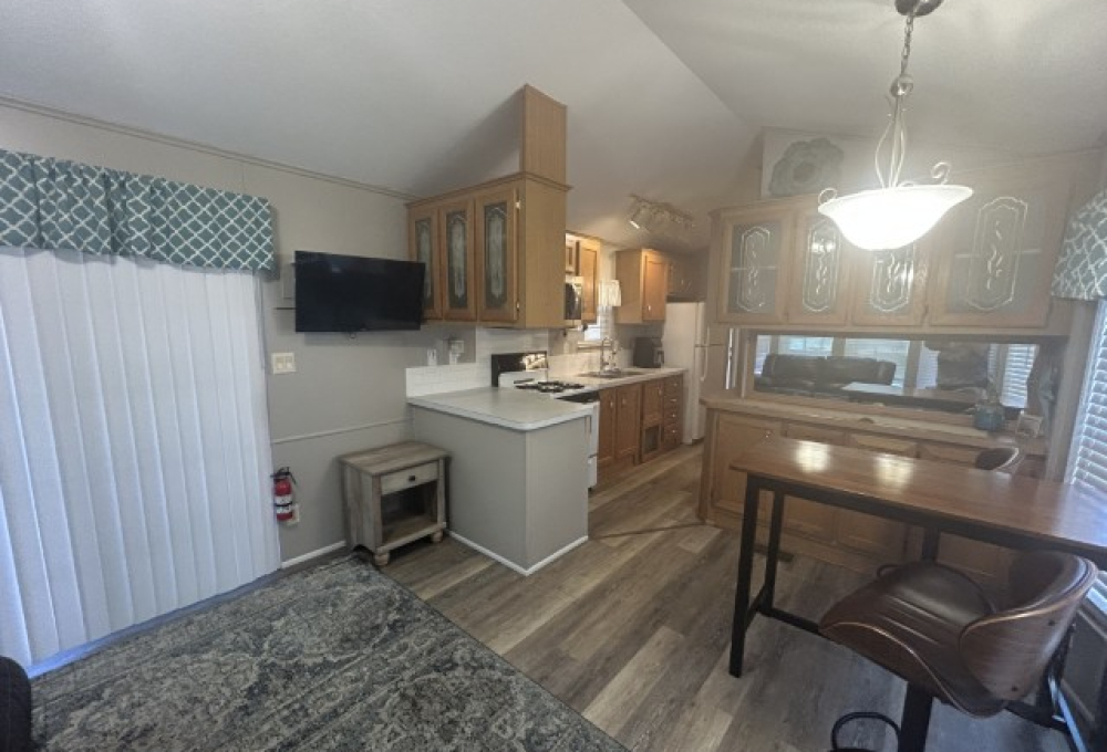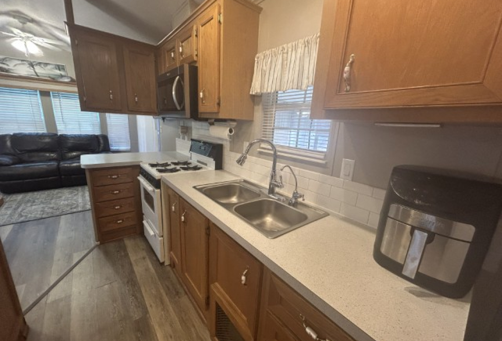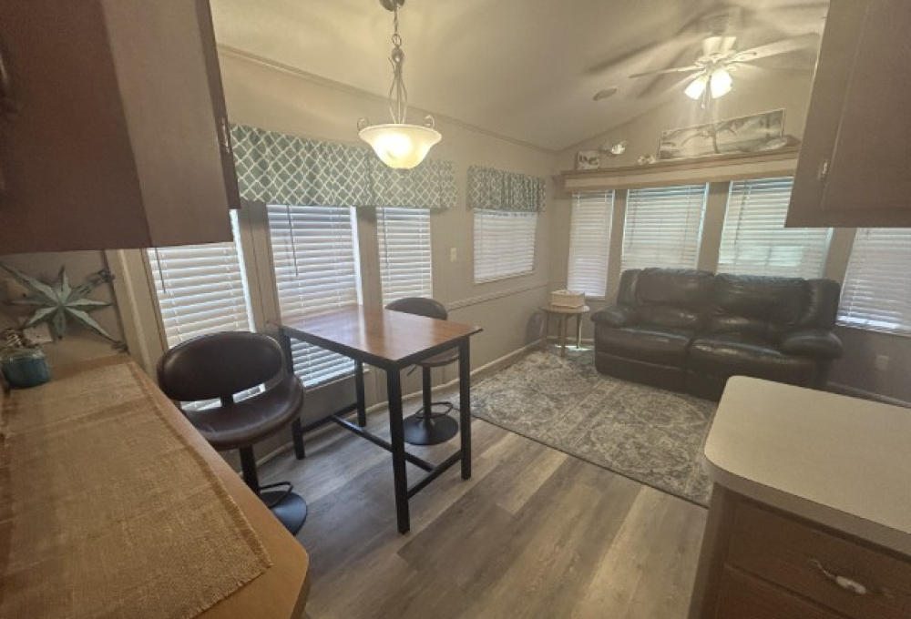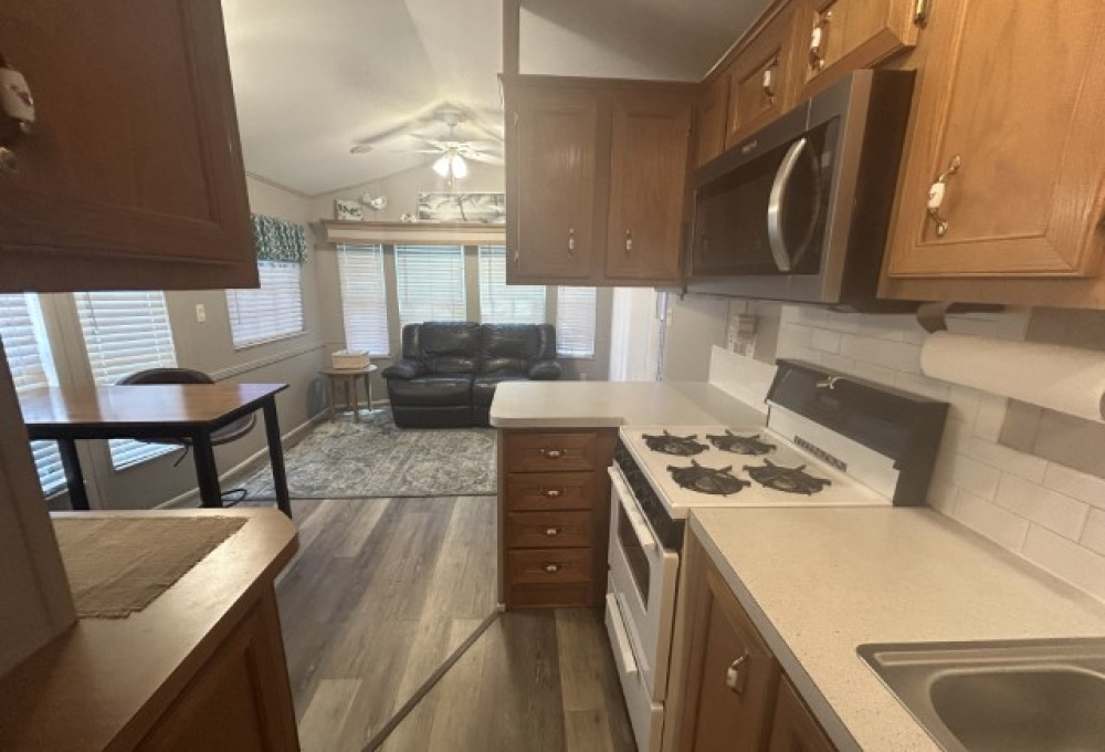 Looking for the perfect winter getaway? This 2005 12x34 furnished park model (just needs a mattress) offers one bedroom and one bath, making it ideal for seasonal living on leased land. The home features an 11x18 screened porch with direct access to a handy 9x8 shed/workshop—perfect for storing tools or enjoying a hobby. Recent upgrades include a metal roof installed in 2025, brand new sinks, faucets, and toilet, plus fresh paint throughout. The entire home is finished with durable LVP flooring. You'll find a gas stove, updated microwave, and washer for convenient living. Located in a vibrant 55+ gated community, residents enjoy a lively social scene with dances, shows, pickleball, billiards, indoor shuffleboard, a music room, fitness center, heated pool, and more. Plus, the property is just a short drive from two major airports and South Padre Island, making travel and beach days a breeze. If you're ready for a fun, active winter retreat, this seasonal home has everything you need!