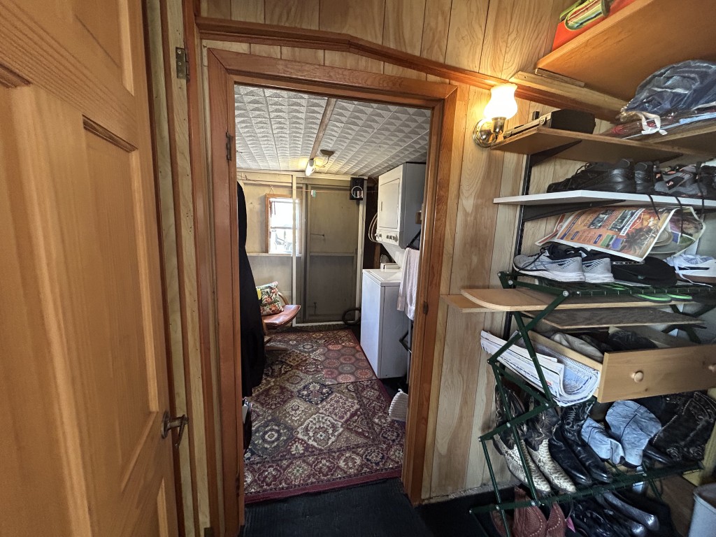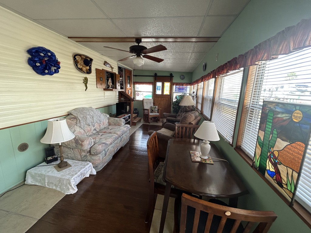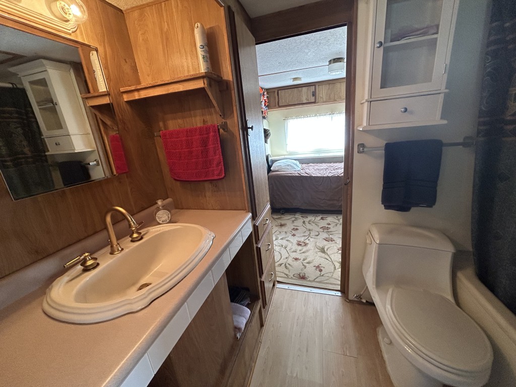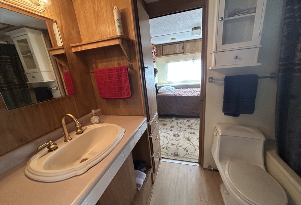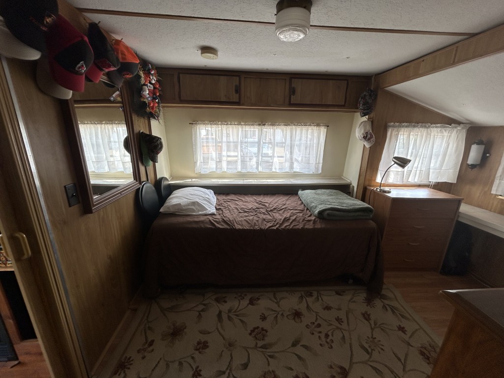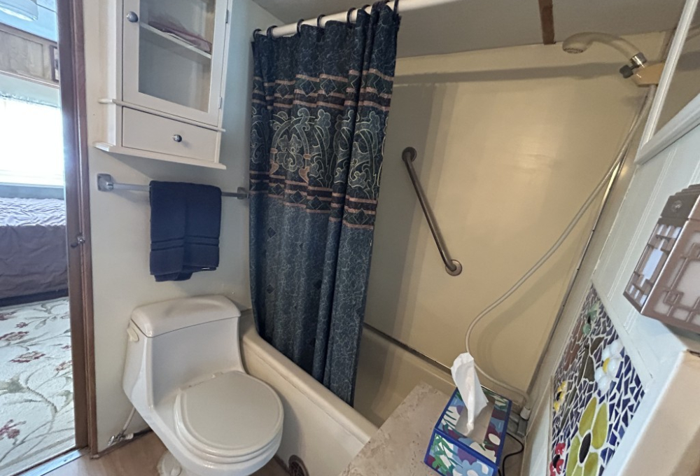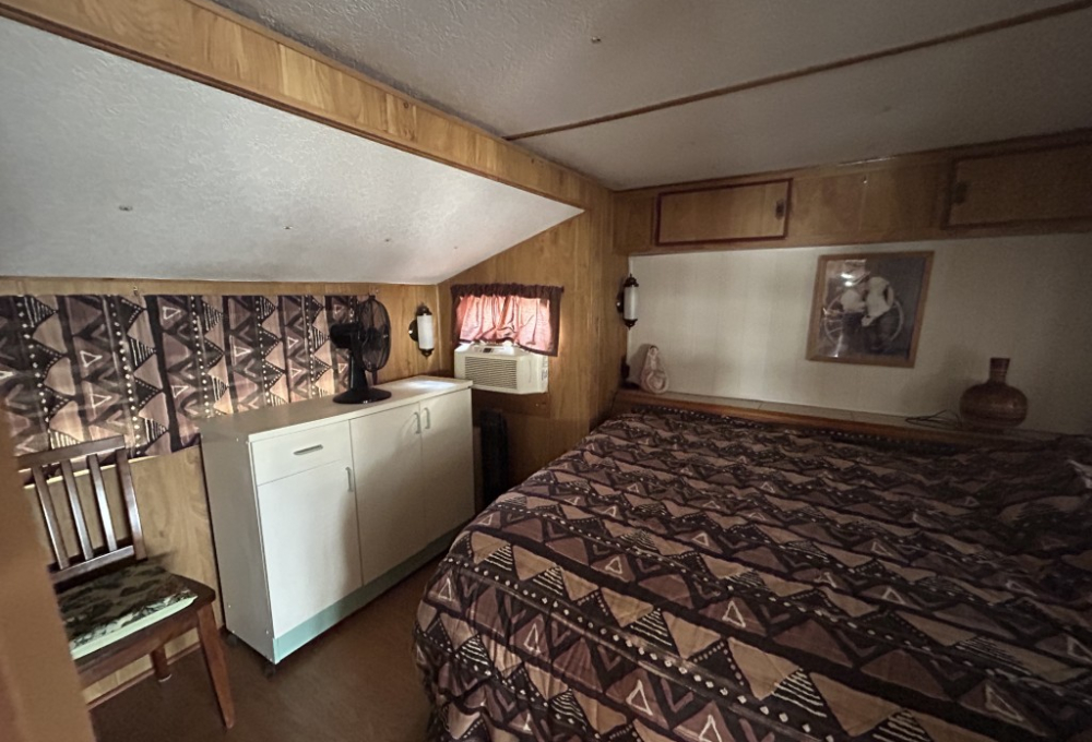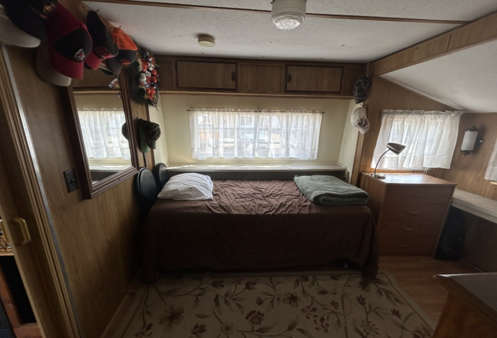 Looking for the perfect winter getaway? Check out this fully furnished 1981 FRAN travel trailer, measuring 8x32 feet with a spacious 256 sq ft interior, plus a roomy 10x23 Texas room. The home features all vinyl flooring and a metal roof covering both the trailer and the Texas room for peace of mind. Outside, you'll find a handy 5x8 storage shed and a cozy 5x5 deck—great for relaxing or entertaining. Inside, enjoy a gas stove and heat, an electric water heater, and a workshop with a large closet at the back of the Texas room's living area. The décor is Southwest-inspired with beautiful custom woodwork, giving the space unique character. Located in a lively 55+ gated community, residents enjoy high-speed internet, cable TV, and tons of amenities including shows, dances, pickleball, indoor shuffleboard, a billiards room, fitness center, games, and more. Plus, you're just minutes from shopping and dining, and only about 45 minutes from South Padre Island. This setup is ideal for anyone looking for a comfortable, active winter retreat!