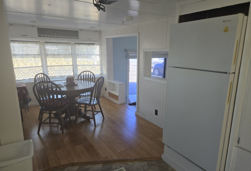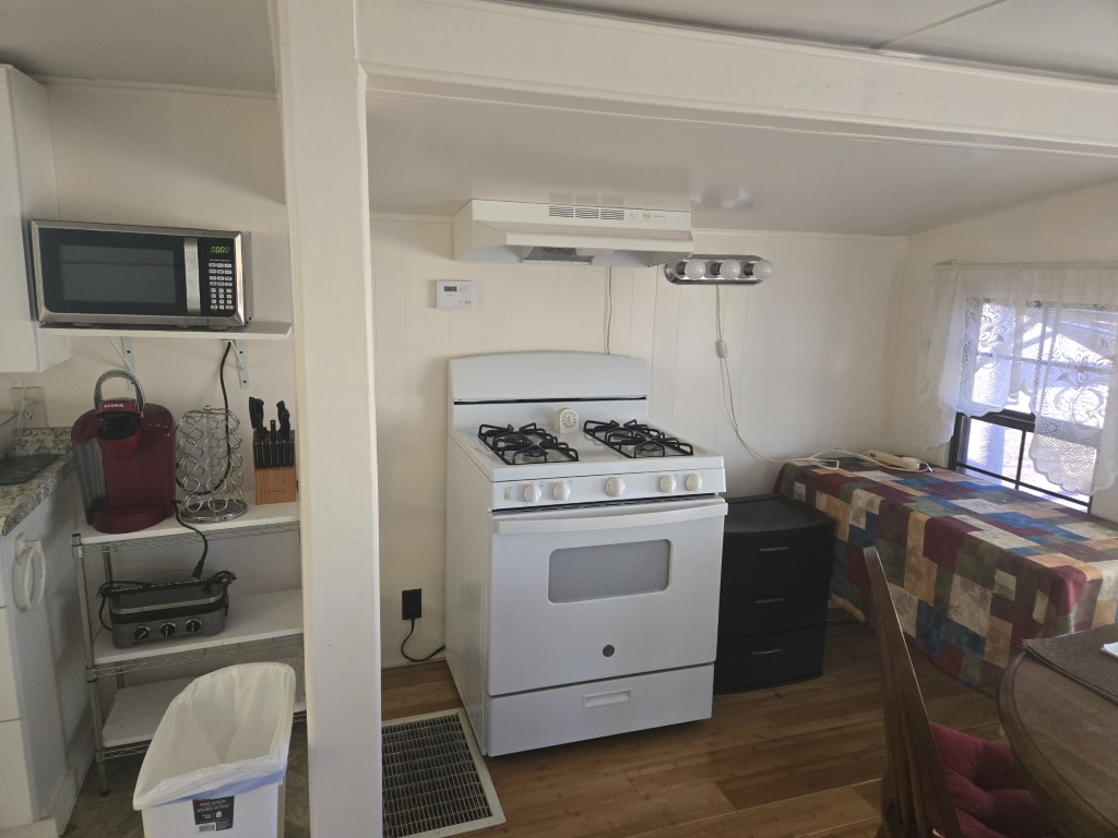 This charming 1988 Hyline Park Model offers two bedrooms, one bath, and a HUGE Texas room addition that provides 300+ sq ft of extra living space. This addition currently features the second bedroom and a spacious, comfortable living room—perfect for hosting guests or spreading out and relaxing.